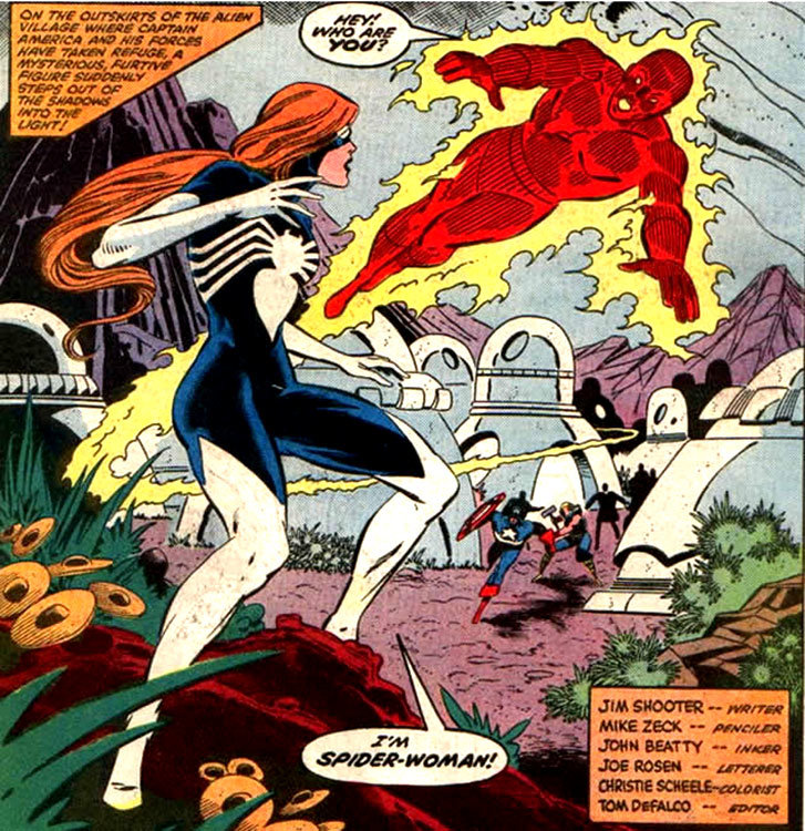 A segunda Mulher-Aranha, Julia Carpenter, surgiu em Guerras Secretas # 6 (num detalhe de um dos quadros). De volta à Terra, atuou ao lado do grupo Força Federal - composto por vilões que pertenciam à segunda Irmandade de Mutantes -, ao lado de Mística.