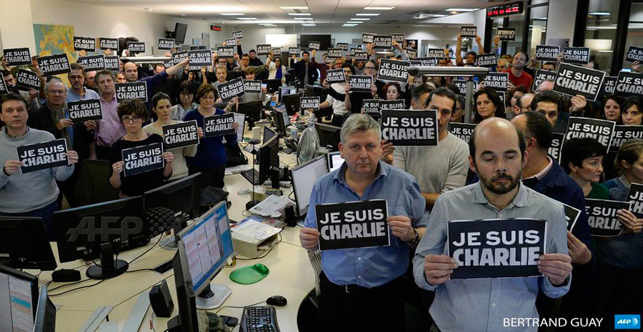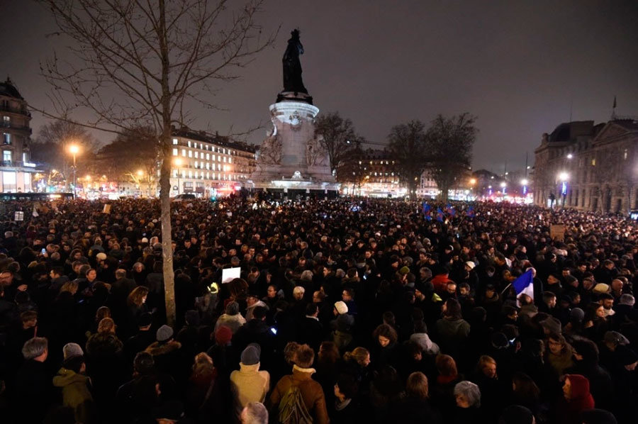 Na noite da última quarta-feira, milhares de pessoas saíram às ruas na França espontaneamente, empunhando lápis e canetas. De acordo com autoridades, aproximadamente 35 mil pessoas se reuniram em vigília na Praça da República, em Paris. Outros lugares tiveram manifestações semelhantes, com participação estimada de mais de 100 mil pessoas.