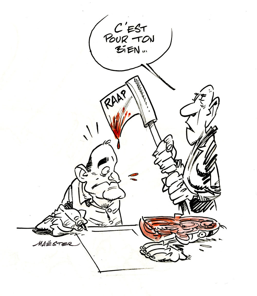 – O agravamento da situação, devido a uma carta do RAAP – Régime de retraite complémentaire des artistes et auteurs professionnels (Pensão suplementar de artistas e autores profissionais), enviada pelo correio, sem nenhum tipo de consulta ou negociação de qualquer tipo, na qual a entidade informa que, a partir de janeiro de 2016, os autores terão que contribuir com 8% de suas rendas para financiar sua pensão complementar obrigatória. Atualmente, cada autor pode contribuir a essa instituição privada pagando uma taxa mínima de 200 euros por ano.