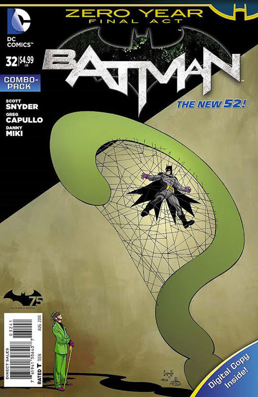 Batman # 32 traz o herói enfrentando o Charada no penúltimo capítulo da saga Ano Zero e, juntando todos os meses de 2014, se tornou a série regular mais vendida deste ano, até aqui.
