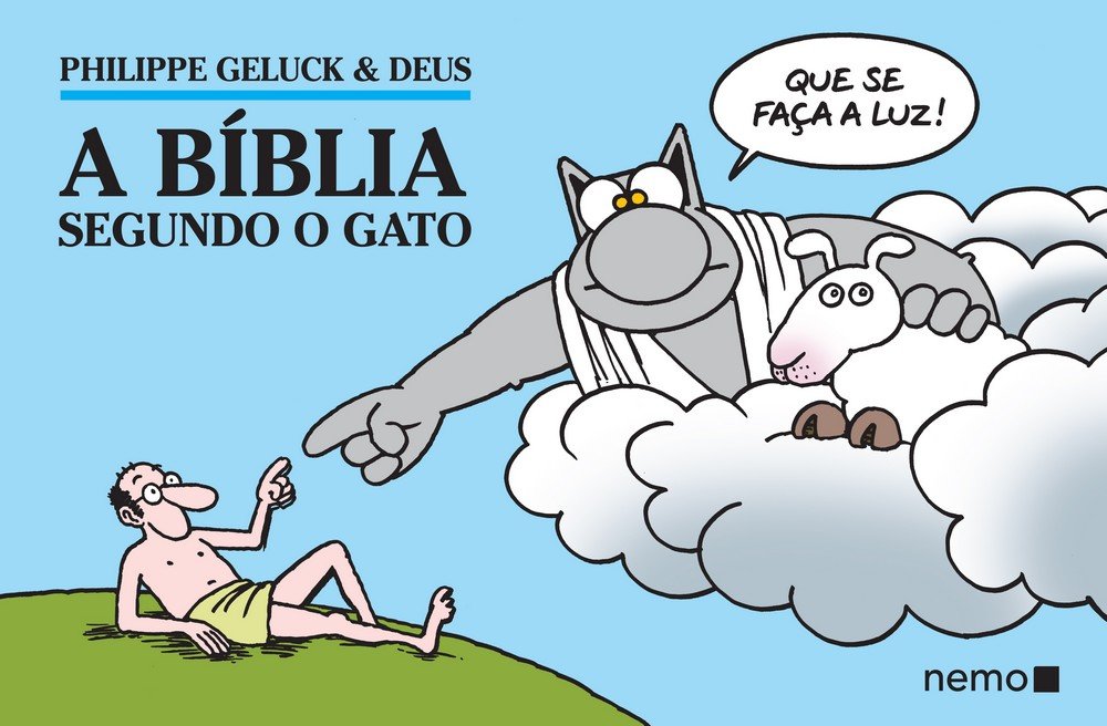 A HQ A Bíblia segundo o Gato, do belga Philippe Geluck, é um lançamento da Editora Nemo.