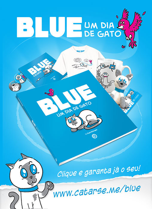 Blue – Um dia de gato contempla o segundo ano das tiras, histórias extras e ilustrações de amigos, em um total de 148 páginas.