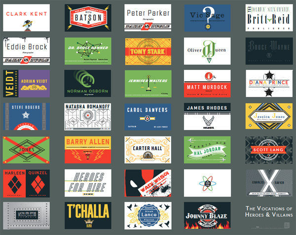 A Pop Chart Lab lançou uma criativa e não menos divertida coleção de cartões de visita que transforma diversos super-heróis e vilões Marvel e DC em homens (e mulheres) de negócios.