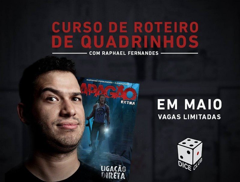 A Dice Club vai oferecer um curso de roteiro para histórias em quadrinhos com o roteirista e editor Raphael Fernandes (Apagão, Ditadura No Ar, MAD). Os alunos vão aprender técnicas para organizar suas ideias e explorar a imaginação.