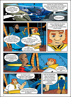 Em As Aventuras do Capitão Nemo: Profundezas... (formato 20 x 27,3 cm, 32 páginas, R$ 19,80), álbum com roteiro de Daniel Esteves e desenhos de Will, os leitores vão acompanhar o capitão e sua tripulação numa viagem de mistérios e perigos a bordo do submarino Náutilus.