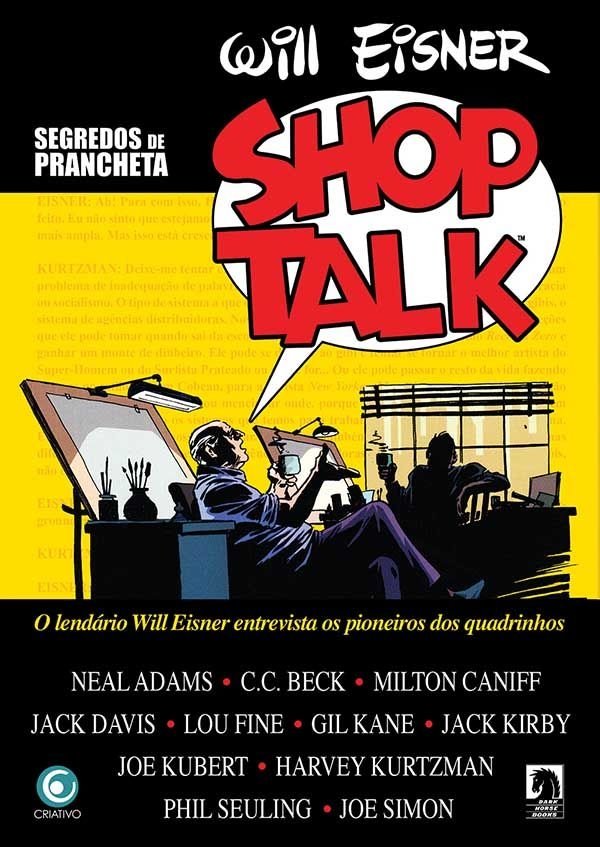 Lançamento da Editora Criativo, Shop Talk - Segredos de Prancheta (formato 17 X 23,5 cm, 184 páginas, R$ 68,00) apresenta um bate-papo informal de Will Eisner (Spirit, Ao Coração da Tempestade, Nova York - A vida na Grande Cidade) com grandes nomes dos quadrinhos dos Estados Unidos, que revelam segredos de bastidores e explicam suas técnicas e a forma como entendem os quadrinhos como arte.