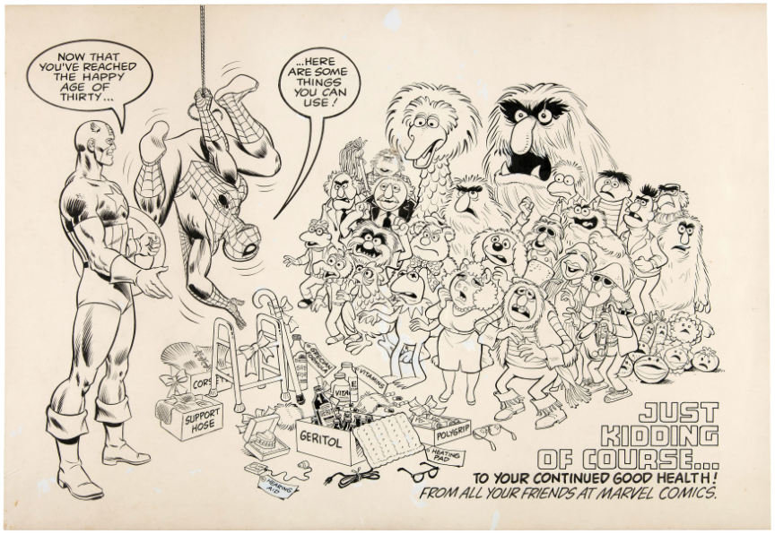 Arte de Romita Sr. com Homem-Aranha, Capitão América, Muppets e Vila Sésamo vai a leilão
