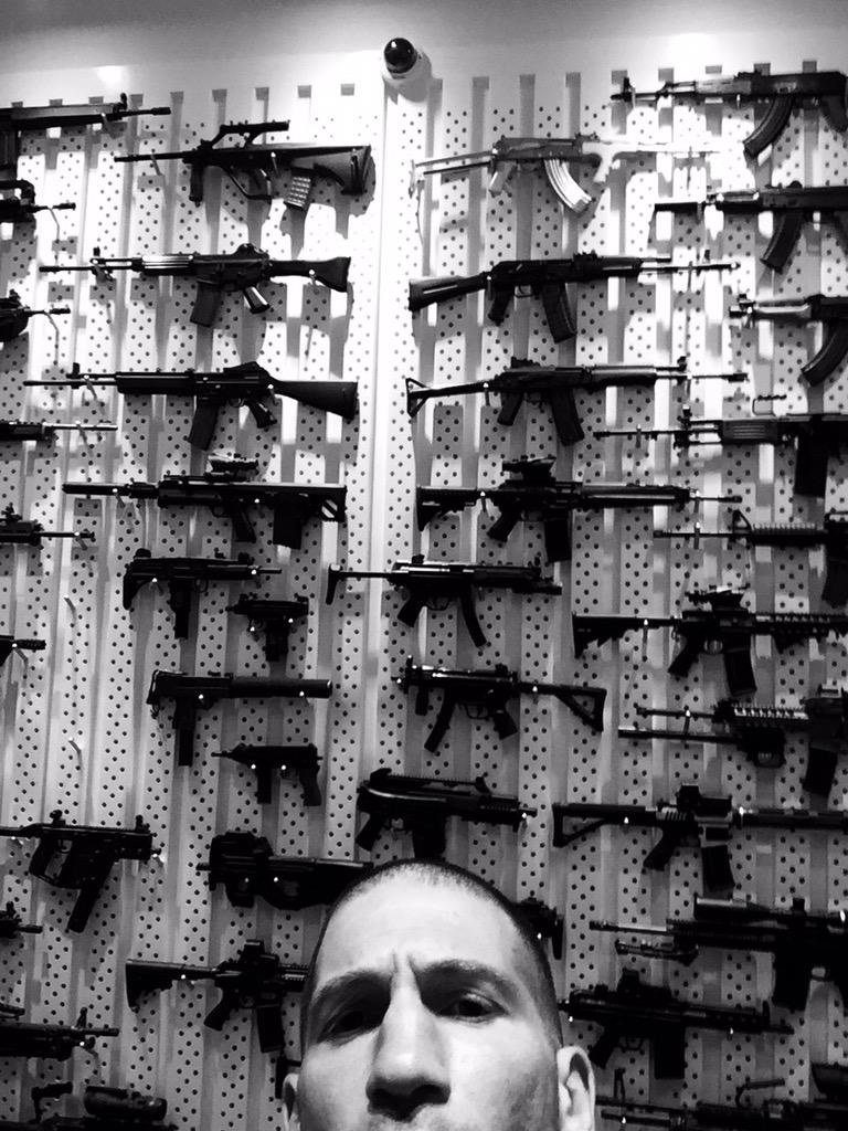 O ator usou sua conta no Twitter (@jonnybernthal) para divulgar duas imagens, uma do arsenal do personagem e outra de uma jaqueta com a caveira símbolo do vigilante da Marvel Comics.