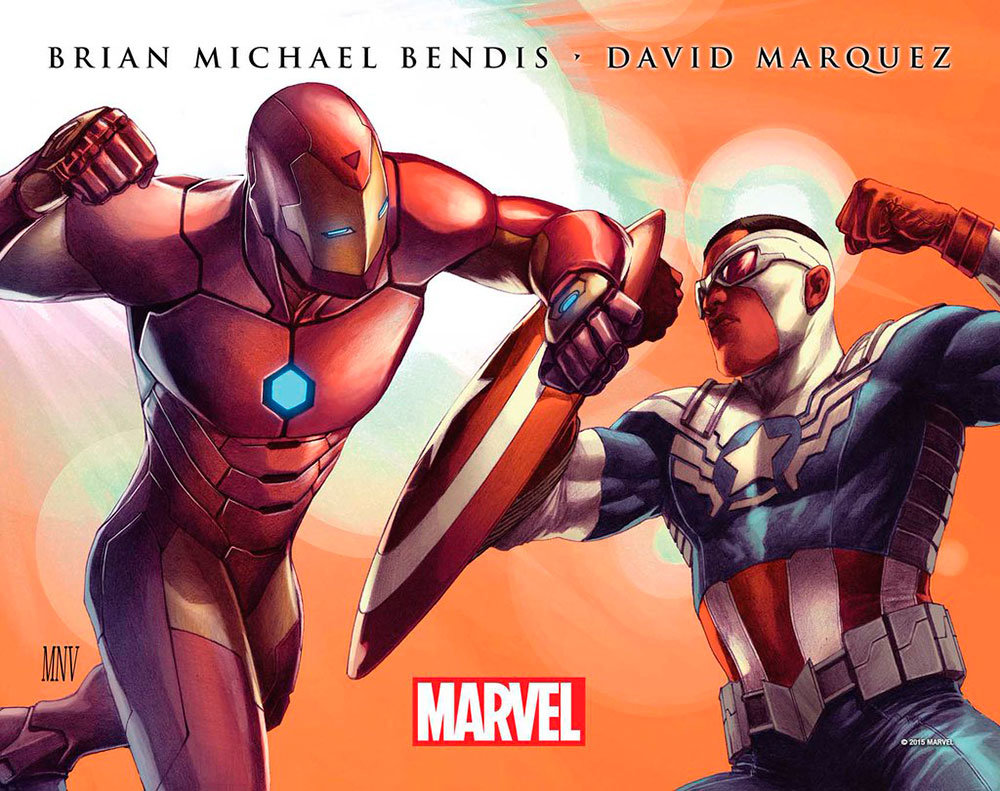 Guerra Civil 2 terá roteiro de Brian Michael Bendis e arte de David Marquez, a mesma equipe criativa responsável pela nova revista mensal do Homem de Ferro na fase All-New All-Different Marvel.