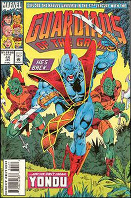 Nos quadrinhos, Yondu Udonta é um humanoide de pele azulada, nativo de Centauri IV e um dos fundadores do grupo original, que opera no século 31, ao lado de Vance Astro, Martinex e Charlie 27. O grupo foi criado em Marvel Super-Heroes # 18, em janeiro de 1969, numa aventura escrita por Arnold Drake e ilustrada por Gene Colan.
