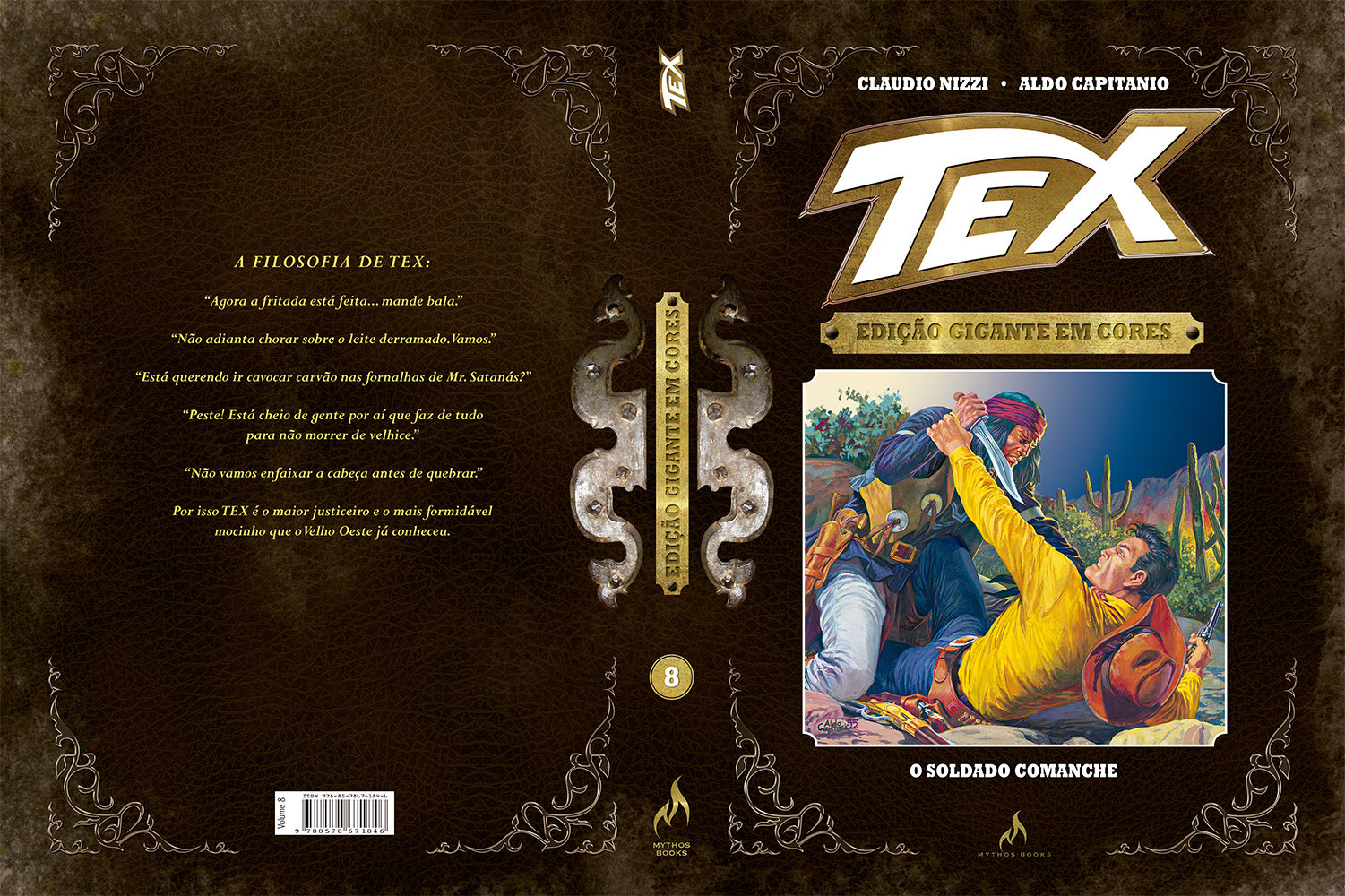 Por fim, Tex Edição Gigante em Cores # 8 (formato 20,5 x 28,5 cm, 232 páginas, capa dura, R$ 79,90) apresenta a história O Soldado Comanche, escrita por Nizzi e ilustrada por Camitanio.