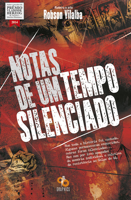 Notas de um tempo silenciado (formato 16 x 24 cm, 104 páginas, R$ 38,00), com roteiro e arte de Robson Vilalba, autor vencedor do Prêmio Vladimir Herzog de Anistia e Direitos Humanos, em 2014, aborda a época da Ditadura Militar no Brasil.