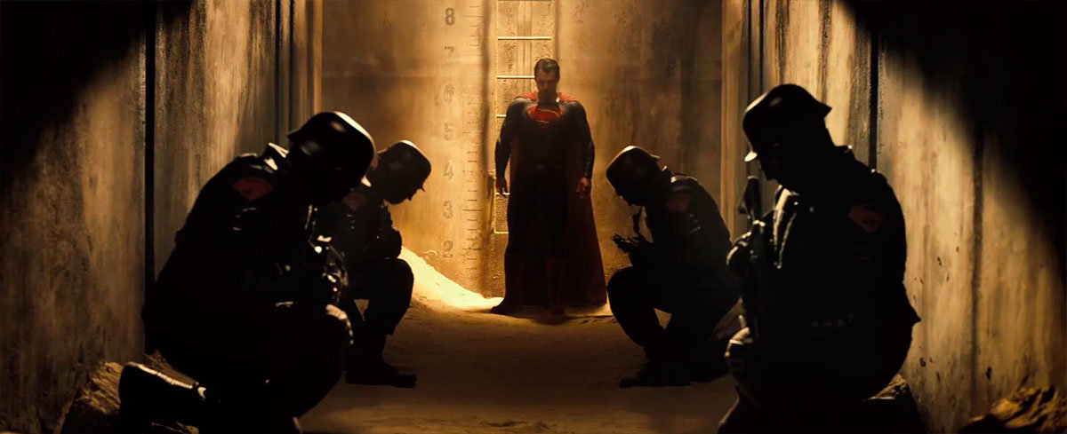 Em uma das cenas mais intrigantes, soldados usando a insígnia do Superman presa ao braço se ajoelham ante a presença do herói. O que será que isso realmente significa? Superman criou um exército? Será uma organização paramilitar que se inspirou nele e decidiu ajudá-lo de forma autônoma a combater as mazelas no mundo e agora o Homem de Aço terá que lidar com o problema? Ou uma sequência de sonho? Provavelmente, isso só será descoberto em março de 2016.