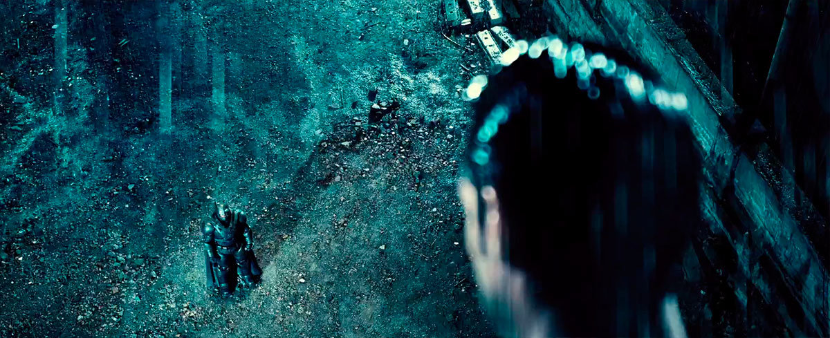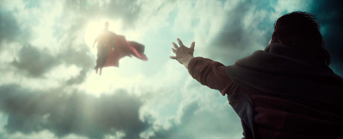 Para reforçar essa sensação, o Superman aparece em posição superior em relação aos outros em todas as cenas do trailer, como se fosse um ser inalcançável. Também reforça uma posição de solidão do personagem. Um imigrante, último de sua espécie, em terra estranha.