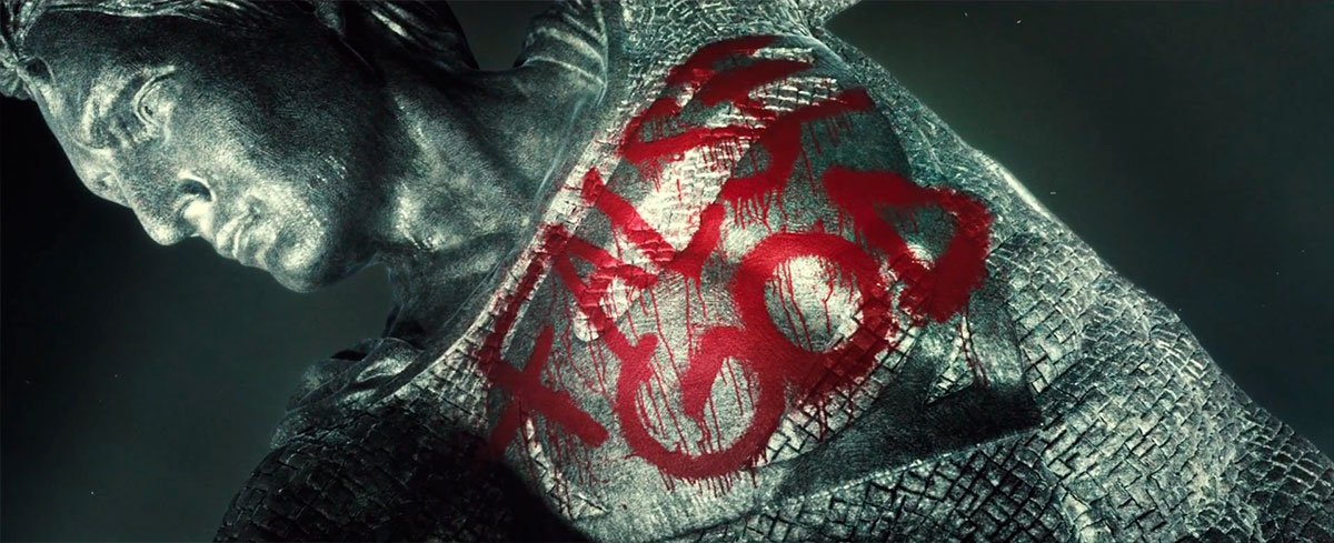 Logo no início, a câmera percorre uma praça, com a cidade de Metrópolis ao fundo, até chegar à estátua do Superman. A sequência parece confirmar que Metrópolis passou por uma reconstrução após os eventos finais do filme O Homem de Aço. Mas e a praça com a estátua? Uma homenagem a quem derrotou Zod?