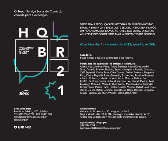 A mostra HQBR21 - O Quadrinho Brasileiro do Novo Século poderá ser visitada até 11 de agosto. No final da visita, o público poderá ler no próprio local as obras destacadas.
