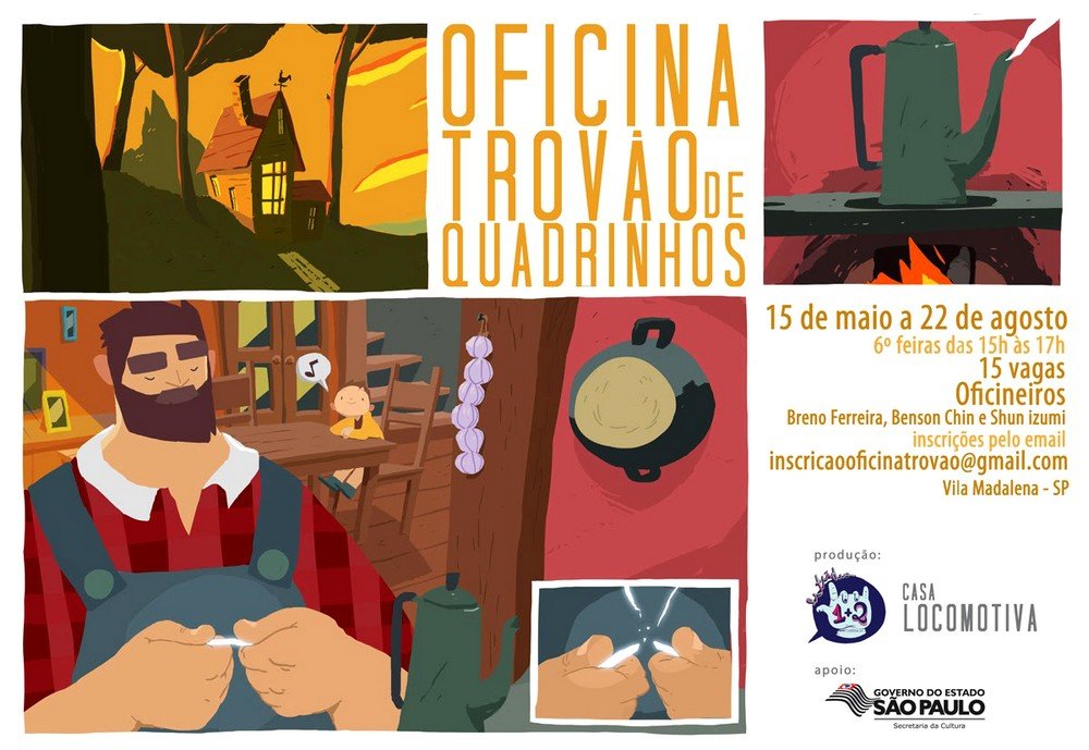 O Estúdio 1+2 e a Casa Locomotiva abriram inscrições para a oficina de quadrinhos Trovão, que terá duração de dois meses, com o apoio da Secretaria da Cultura do Governo do Estado de São Paulo.