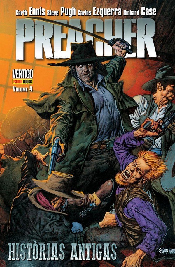 Preacher – Histórias Antigas (formato 17 x 26 cm, 228 páginas, R$ 64,00) é o quarto capítulo da saga criada por Garth Ennis (roteiro) e Steve Dillon (arte) e reúne as seguintes edições especiais: O Santo dos Assassinos, Os Bons Companheiros e A História de Você-Sabe-Quem.