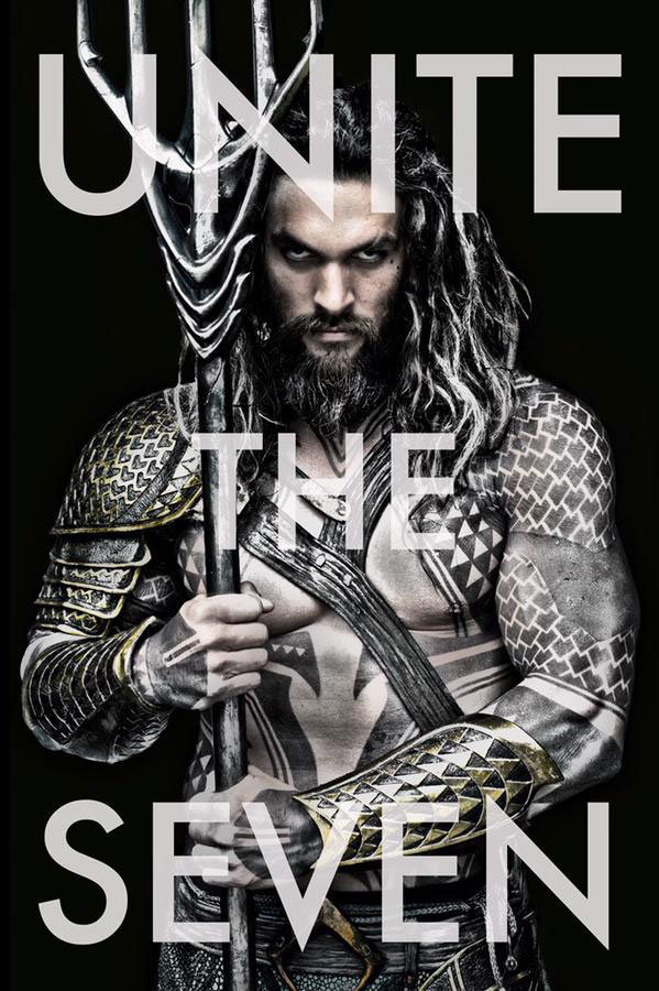 A imagem inclui o slogan Unite the Seven (Unir os Sete), uma alusão tanto ao rei dos sete mares, quanto aos sete membros principais da Liga da Justiça: Superman, Batman, Mulher-Maravilha, Flash, Lanterna Verde, Aquaman e Caçador de Marte. É possível que esse último personagem seja substituído pelo Ciborgue (Cyborg), que será interpretado por Ray Fisher.