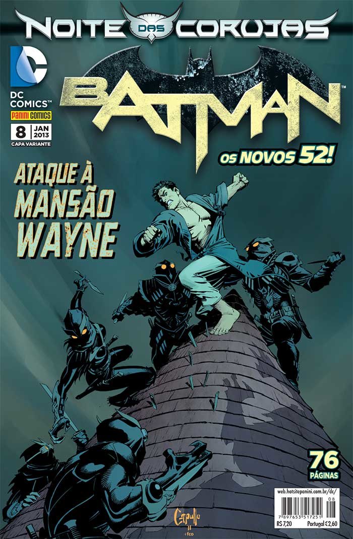 Autores: Ataque à mansão Wayne (Batman # 8) - Scott Snyder (roteiro), Greg Capullo (desenhos), Jonathan Glapion (arte-final) e FCO Plascencia (cores);